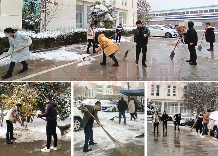 小年迎瑞雪,瘟除天下泰。1月14日,農曆臘月二(èr)十三,在北方小年,一場瑞雪迎期而至,雪帶來了美好的寓意,帶來了令人(rén)賞心(xīn)悅(yuè)目的雪景(jǐng),但也給人們的出行帶來了(le)不便。為方便公司員工出(chū)行,1月15日(rì)鄭州九天公司組織全體員工在第一時間開展了掃(sǎo)雪活動
